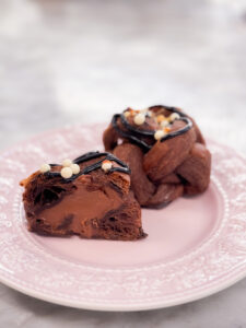 ココアを練り込んだブリオッシュ生地に、フランス産発酵バターを折り込み、