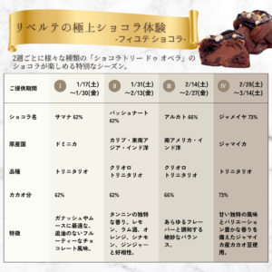 1月17日から3月14日までの期間中、2週間ごとに使用するショコラが変化。